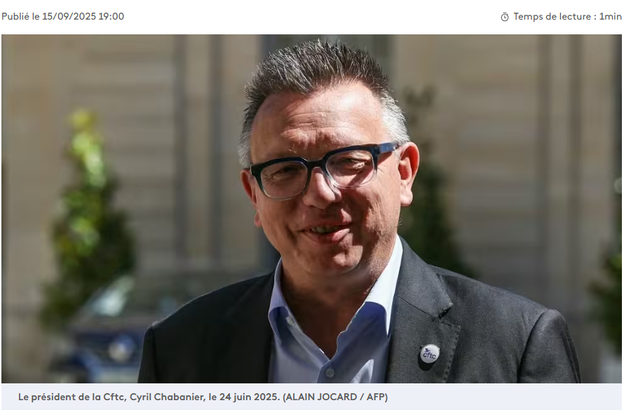 Cyril Chabanier, le président de la CFTC, la Confédération française des travailleurs chrétiens, a salué lundi 15 septembre sur franceinfo « une première rencontre plutôt cordiale et un Premier ministre à l’écoute », après sa réunion avec Sébastien Lecornu à Matignon.